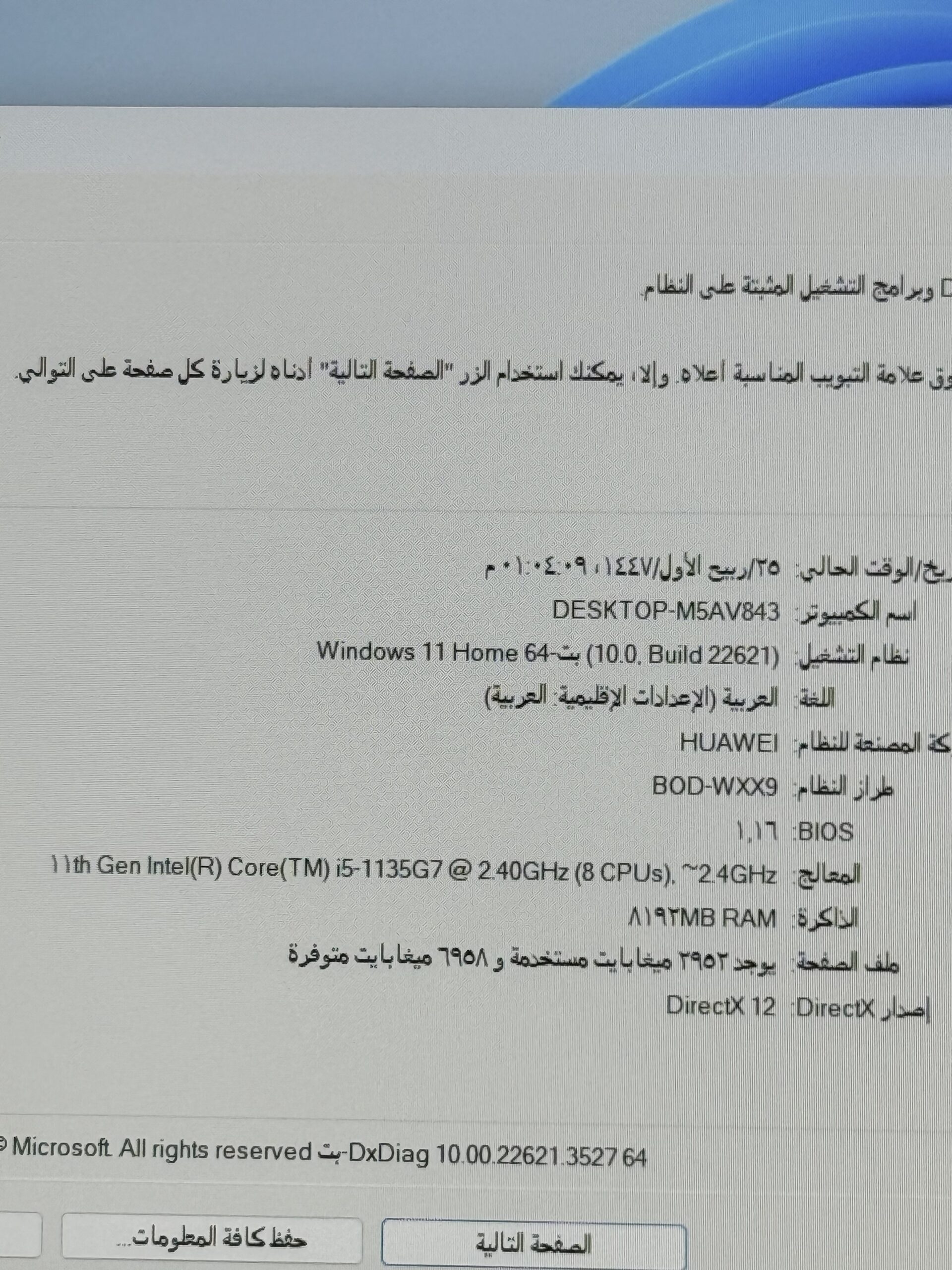 المعالج: Intel Core i5-1135G7